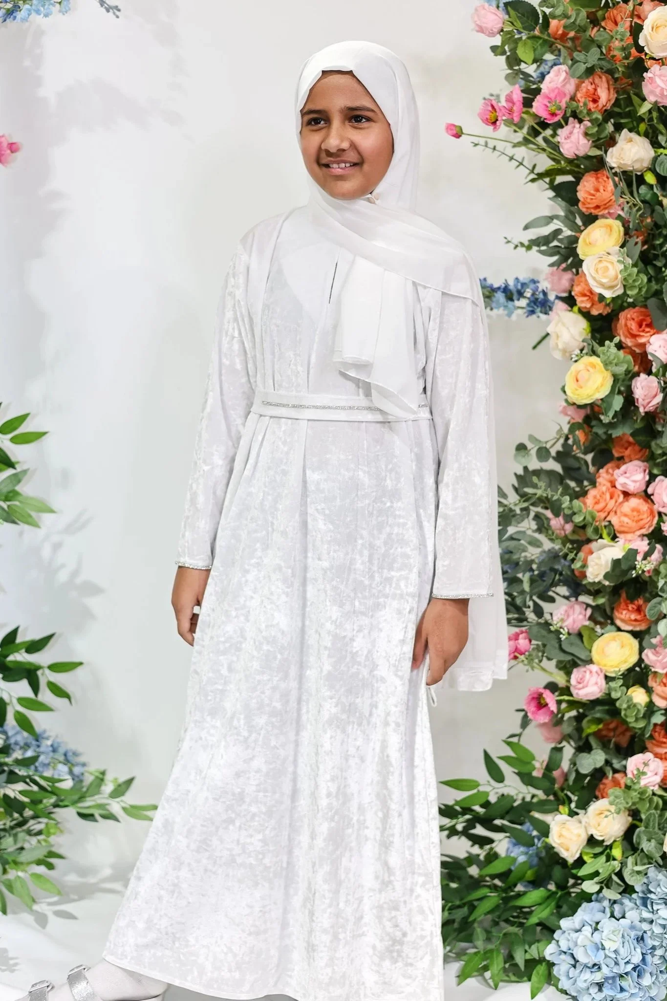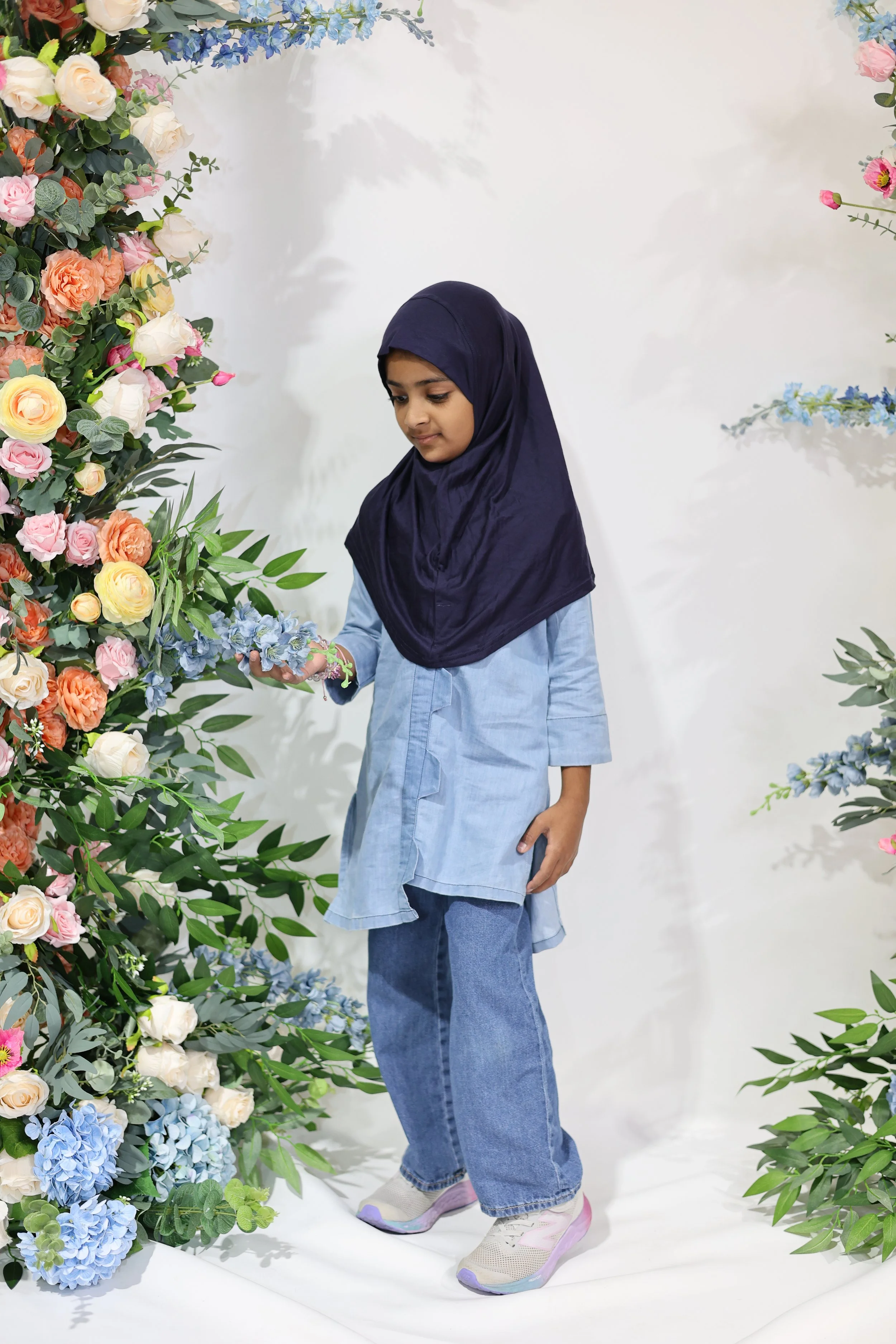 • Abir is our signature pre-stitched hijab that combines the ease of an instant fit with the versatility of a full-length wrap. Made from buttery-soft, breathable jersey, it’s sewn to gently hug the face while leaving extra fabric to drape, wrap, or style however your little one likes.